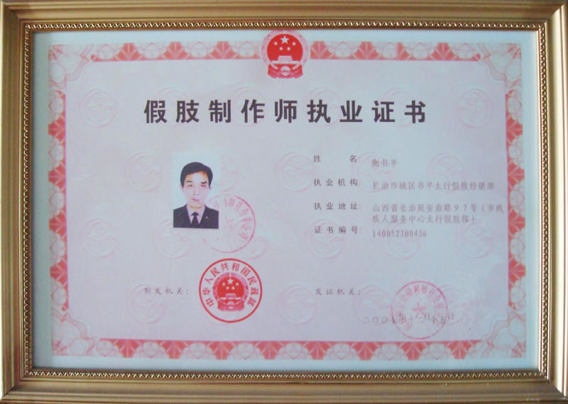假肢制作师职业证书